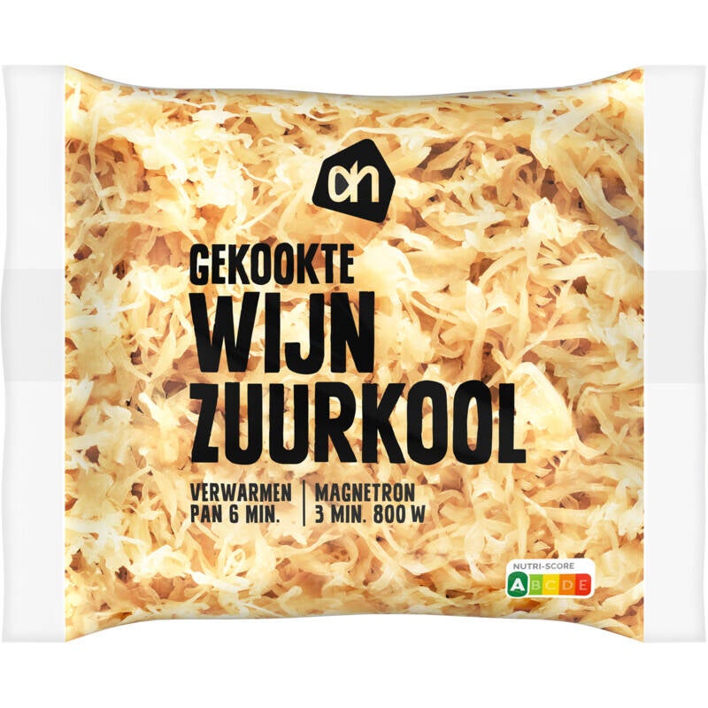 Voeg de gesneden knoflook toe. Laat het vocht uit het pakje zuurkool lopen en doe de zuurkool daarna in de pan. Hussel alles door elkaar. Breng op smaak met peper en zout.