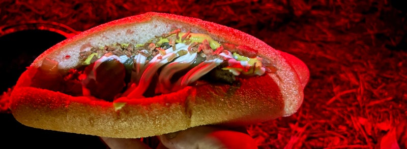 Haal de worsten uit de pan. Indien de saus te waterig is, voeg wat bloem toe. Dit was in dit geval niet nodig. Neem de pistolets en snij deze aan de bovenzijde open. Plaats de worst, voeg ui, spek en zuurkool toe. Bedek het geheel met saus (Zaanse mayo en mosterd) en top af met wat gesneden augurk en uitgebakken uitjes van de toko. Bam! Succes gegarandeerd mofo.