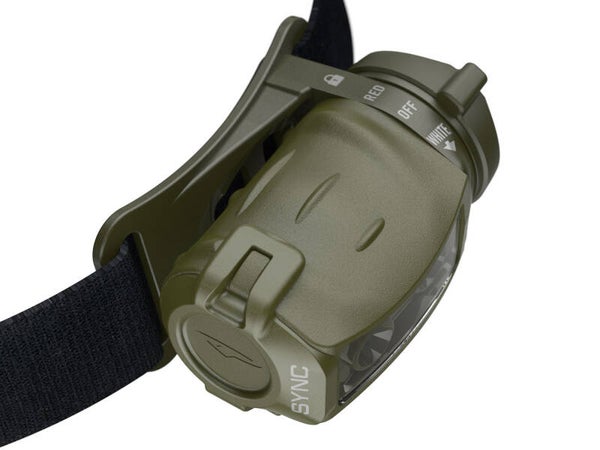 De Sync is een compacte hoofdlamp voorzien van bijgeleverde hoofdband. Rood licht functie aanwezig. Rood licht draagt minder ver en is beter voor uw nachtzicht.