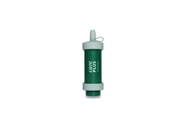 Compact waterfilter van Care Plus. Wordt geleverd met (1 liter) knijpzak.